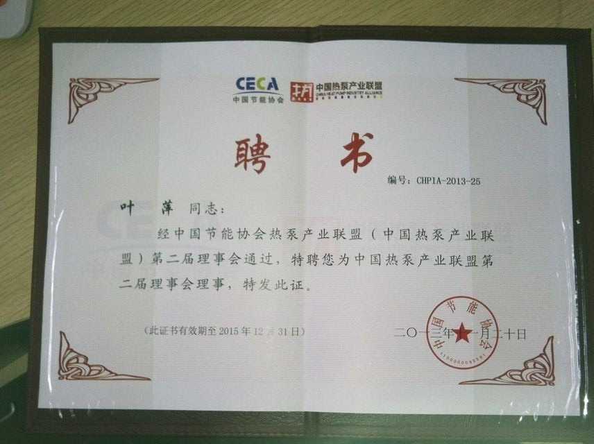 阳帆空气能总经理叶萍女士应邀参加年会,在此次年会中,阳帆空气能再次连任中国节能协会热泵产业联盟(中国热泵产业联盟)理事单位。阳帆空气能总经理叶萍被特聘为中国热泵产业联盟第二届理事会理事。