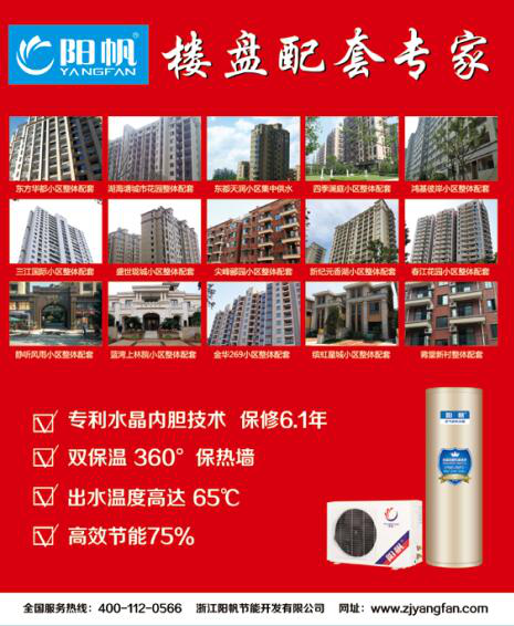 做最好的自己只为“配”上更好的你随着绿色建筑理念的渐入人心,空气能楼盘配套越来越受到房产企业与空气能行业的关注与青睐。而就整个行业来说,把楼盘配套作为企业发展的主旋律,从企业发展之初就坚持楼盘配套的企业除了阳帆,在行业再也找不到第二家。这么多年的坚持,阳帆把空气能楼盘配套在金华做到极致,做成了全国空气能楼盘配套的标杆。在北方采暖市场激战正酣的情况下,阳帆能够专注于做楼盘配套,并走出自己特色这本就是值得称道的事情。
