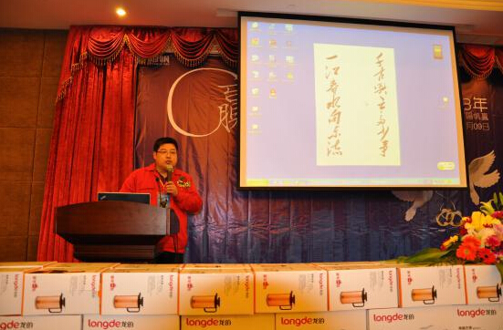 此次经销商培训大会,邀请了知名主持人田文韬主持,田文韬曾经是一名教师,2004年进入热泵行业,坚持了8年,曾服务于阳帆空气能,现专注于策划推广工作。