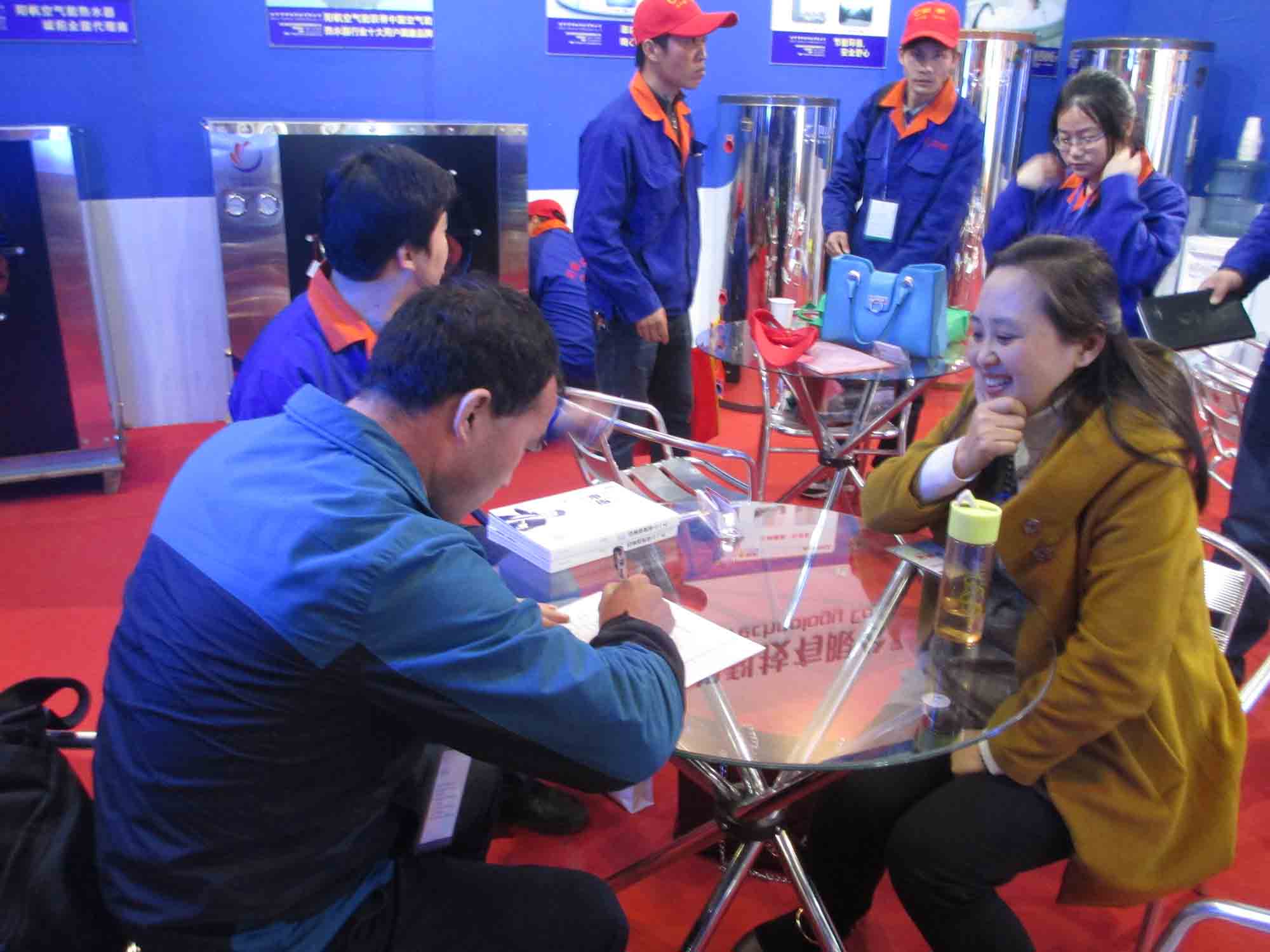 展会中虽然人流量很大,但是唯有过硬的产品质量才能吸引到客户,留住客户,最后现场签单。阳帆科技作为一家专注于热泵技术研究、空气能热水器生产的企业正是凭借着“以质量谋生存,以信誉谋发展”的信念吸引着众人的眼球。超级买家团的任治国任总对于阳帆空气能热水器很是看好,他说,“阳帆空气能热水器一直走在行业的前头,不管是产品质量还是售后都能让人信得过。这次来展会也去了很多展位,但是最终还是青睐于阳帆这个敢打‘质量派’的品牌”。当然敢于签单,这与空气能市场无穷的潜力也是分不开的。在2013全国两会的政府工作报告中,总理特别提出:要顺应人民群众对美好生活环境的期待,“用实际行动让人民看到希望”。节能减排、绿色生活是所有人民群众的宏愿。因此开发新能源成为了环保工作中的重中之重。空气能热水器以其节能环保的特性成为“第四代”热水器,顺应时代潮流,市场前景巨大。