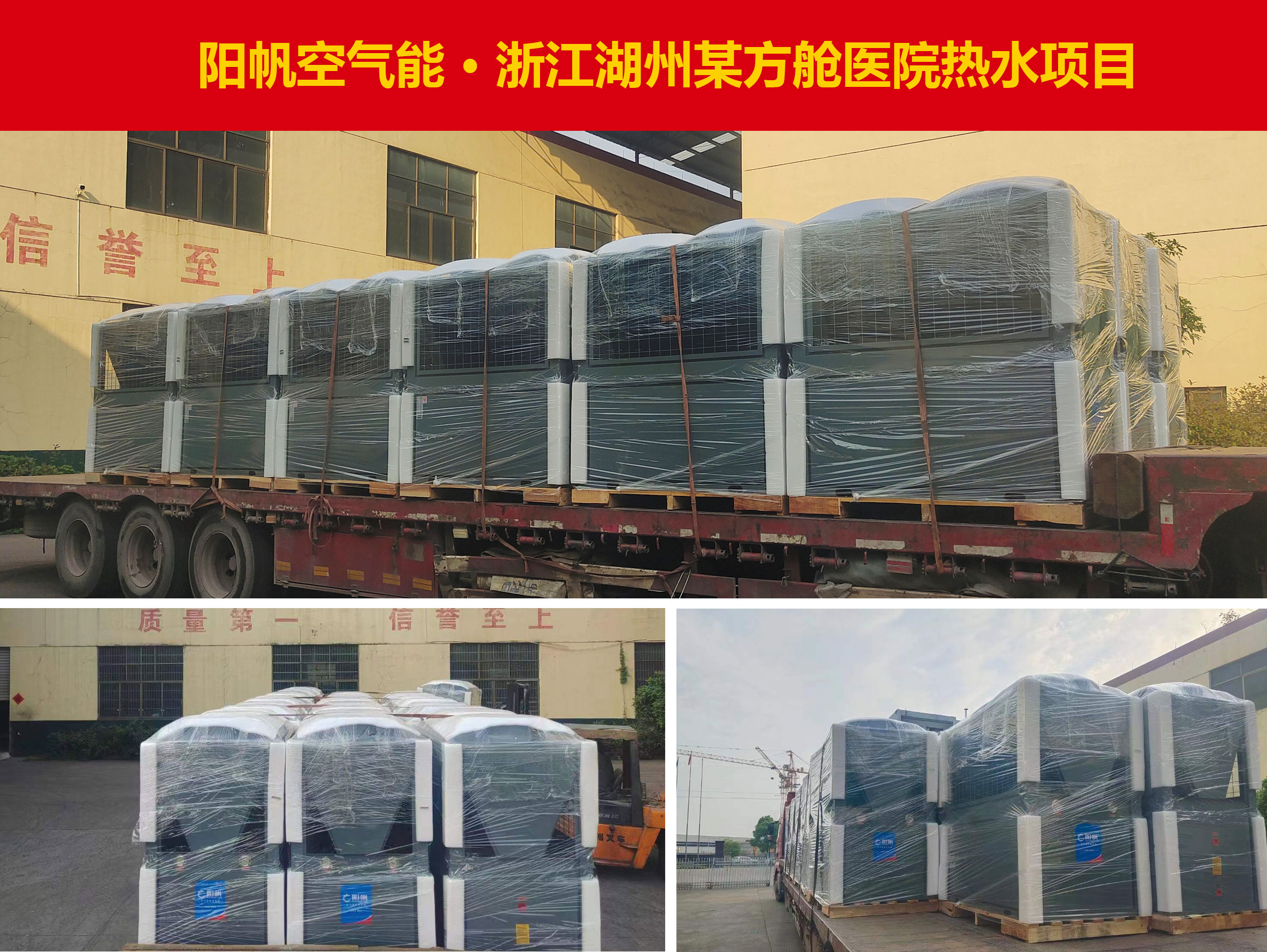 疫情之下,方舱医院的建设在快速推进中,相关物资的运送也都紧锣密鼓的运抵现场。热水作为方舱医院的必备品,对于热源的选择也颇为慎重,空气源热泵在近两年的方舱医院和隔离点的健康、节能等特性得到广泛认可。4月中旬,阳帆作为空气源热泵的标杆企业,陆续为滁州方舱医院、金华两个方舱医院和湖州方舱医院等提供热泵主机和解决方案。
