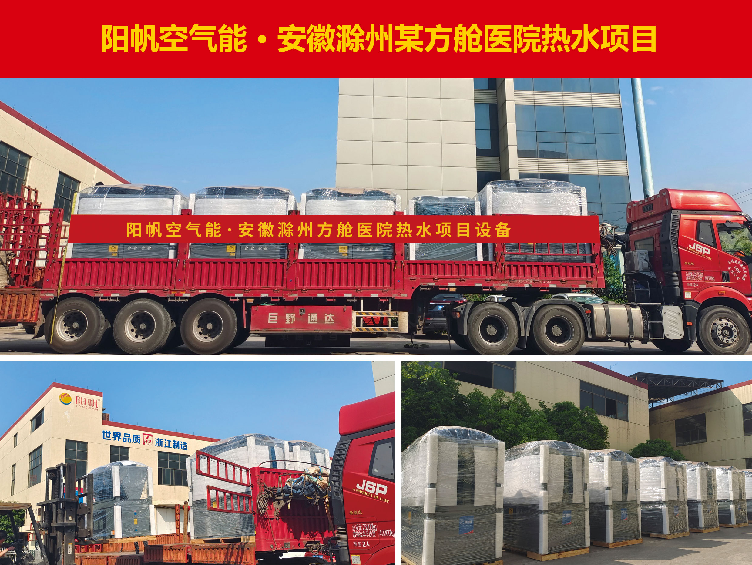 疫情之下,方舱医院的建设在快速推进中,相关物资的运送也都紧锣密鼓的运抵现场。热水作为方舱医院的必备品,对于热源的选择也颇为慎重,空气源热泵在近两年的方舱医院和隔离点的健康、节能等特性得到广泛认可。4月中旬,阳帆作为空气源热泵的标杆企业,陆续为滁州方舱医院、金华两个方舱医院和湖州方舱医院等提供热泵主机和解决方案。