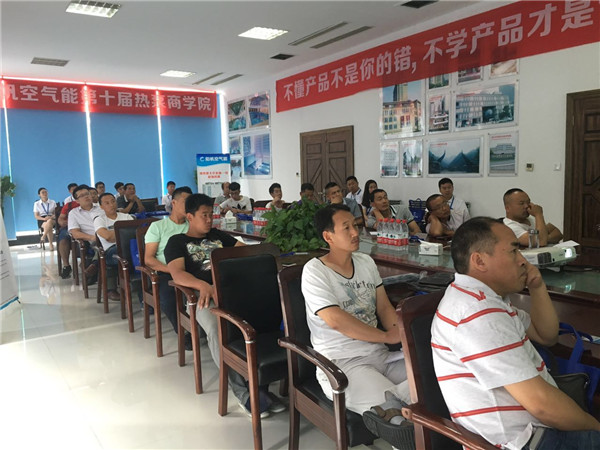 ??在22号上午阳帆空气能副总经理王海峰给经销商介绍阳帆商用机组的特点,商用机销售策略和技巧。并主要就空气能地暖发展的现状、分类及不同形式采暖的优缺点,水地暖系统的介绍、系统中各个部件的功能与组成,水地暖系统两种铺设方法以及施工流程进行介绍与宣讲。前来参会的经销商听得很投入,讲师和经销商积极互动,让每一位经销商学到了关于空气能商用机销售与实用的系统知识。